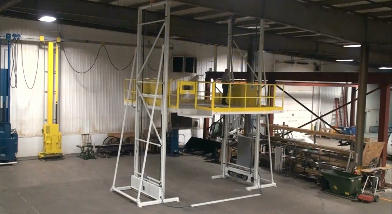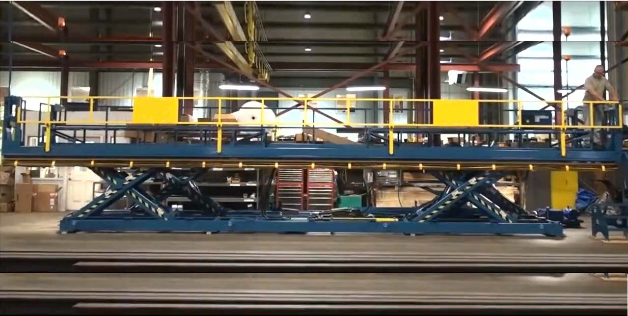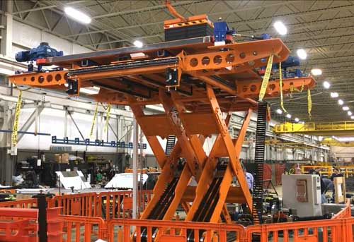 定制12噸麥克漢姆輪帶傾斜甲板升降臺(tái)-加長(zhǎng)型工廠升降機(jī)