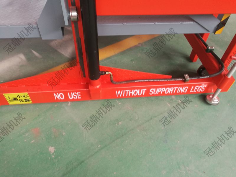 3、裝卸平臺(tái)機(jī)架后部設(shè)有可調(diào)節(jié)螺絲桿支撐地面,用于裝卸貨作業(yè)時(shí)起到整體固定作用;