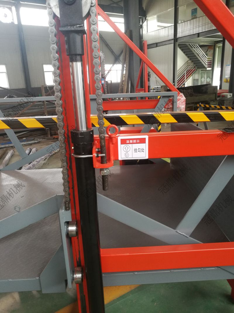 4、裝卸平臺(tái)底架下設(shè)有緩沖橡膠墊,在平臺(tái)下降到地面時(shí)起到緩沖作用減小沖擊;